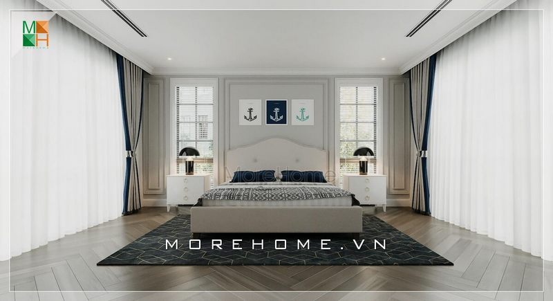 Bố trí nội thất phòng ngủ biệt thự, nhà phố đơn giản, gọn gàng ít đồ nhưng tiện nghi để có một không gian thoáng đãng để thư giãn, nghỉ ngơi.