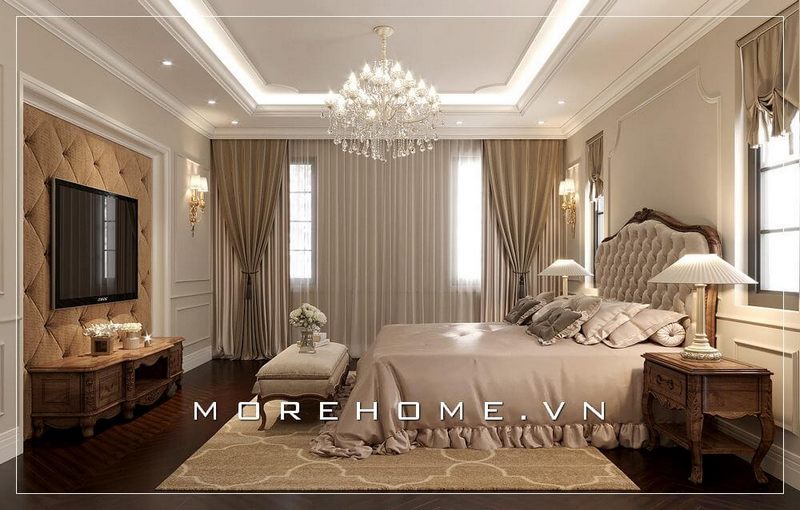 Thiết kế nội thất phòng ngủ mang phong cách tân cổ điển sang trọng, cao cấp cho biệt thự