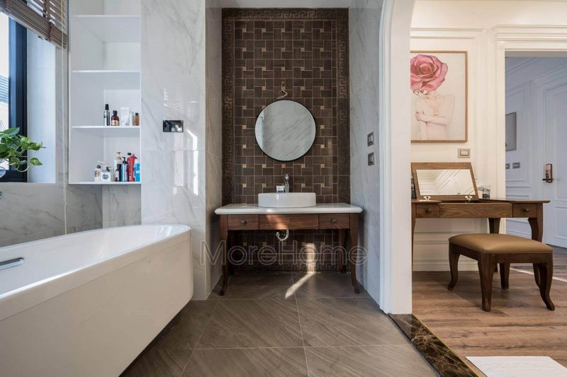 Thi công một phòng tắm đẹp nhất cho phòng ngủ master của biệt thự tân cổ điển.