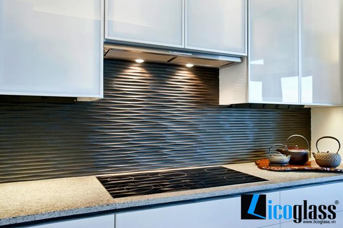 Kính ốp bếp hoa văn là một sự sáng tạo mang nghệ thuật vào không gian bếp, các hoa văn này có họa tiết khá đơn giản, thường là họa tiết hoa dây để khiến cho người nhìn vào thấy cảm giác nhẹ nhàng mà không hề có sự đơn điệu.Ứng dụng của kính bếp có hoa văn khá rộng rãi nhưng được sử dụng nhiều nhất trong lĩnh vực trang trí nội thất như ốp bếp, ốp vách tường, vách ngăn, vách kính...